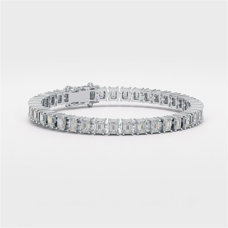 Sporty Rocks Empire er Haute Rocks’ dristige tolkning av det ikoniske tennisarmbåndet – elegant, arkitektonisk og kompromissløst i uttrykket. Hver emerald cut-diamant er presist fasettslipt og satt i en stram, rektangulær fatning som reflekterer lys som små speil.